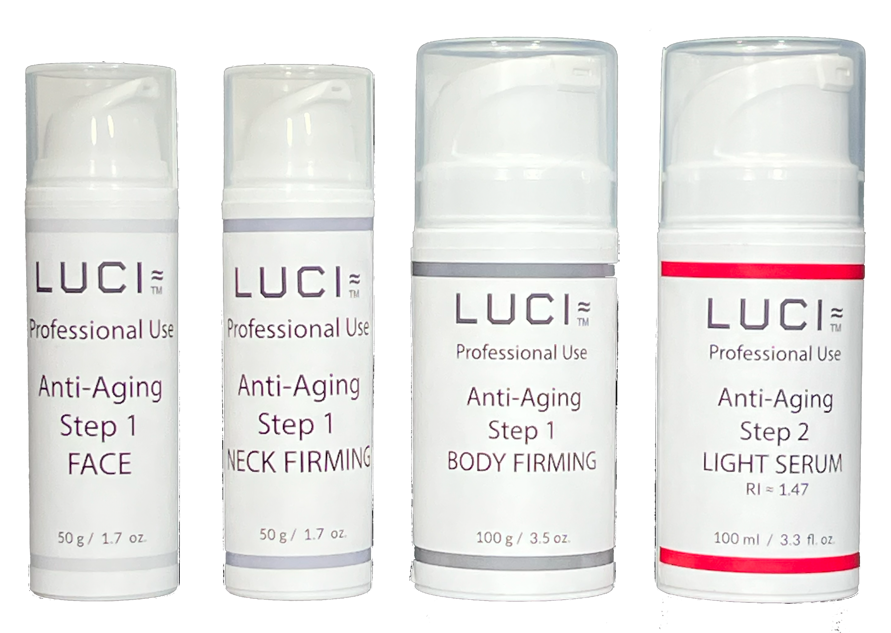 LUCI≈ patented and patent pending platform technologies are in use with leading light therapy systems for light beds, panel lights, high power laser treatments, IPL applications and laser tattoo removal. Topical systems increase light penetration and propagation into the skin and deeper tissues for cell regeneration, eliminate free oxygen radicals, improve infusion of bioactive ingredients and promote a healthy skin matrix. LUCI≈ systems include treatments for skincare, body care, scalp and hair care, personal care and pain management for at-home, spa, salon and professional use.